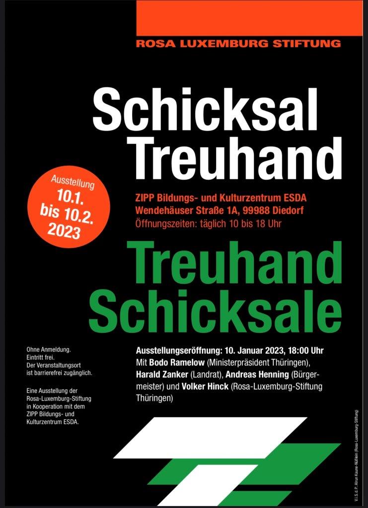 10. Januar bis 10. Februar 2023: 4-wöchige Ausstellung „Schicksal Treuhand, Treundhand Schicksale“
